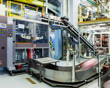 Injection molding machines: Melt plastic and inject it into a mold to create parts.