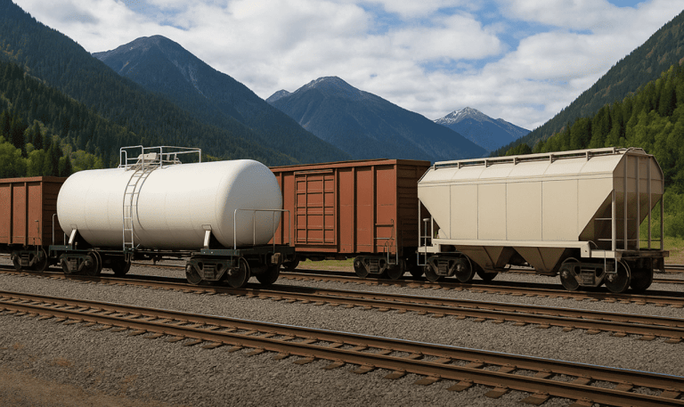 Freight cars: Wagons designed for transporting various goods, including hopper cars for bulk materials, tank cars for liquids, and autoracks for vehicles.